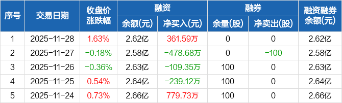 合康新能:融资净买入361.59万元,融资余额2.62亿元(11-28)