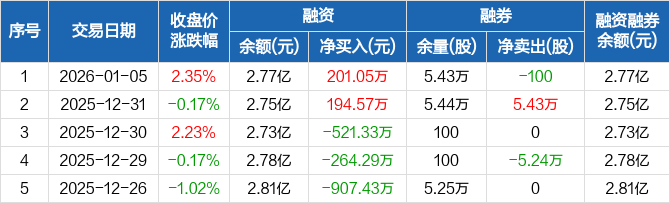 合康新能:融资净买入201.05万元,融资余额2.77亿元(01-05)