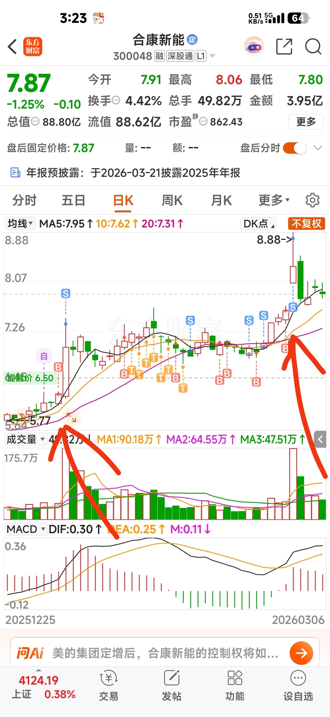 $合康新能(SZ300048)$ 三分选股,七分运气吧,巧妙的买卖点位,贡献了大部分收益