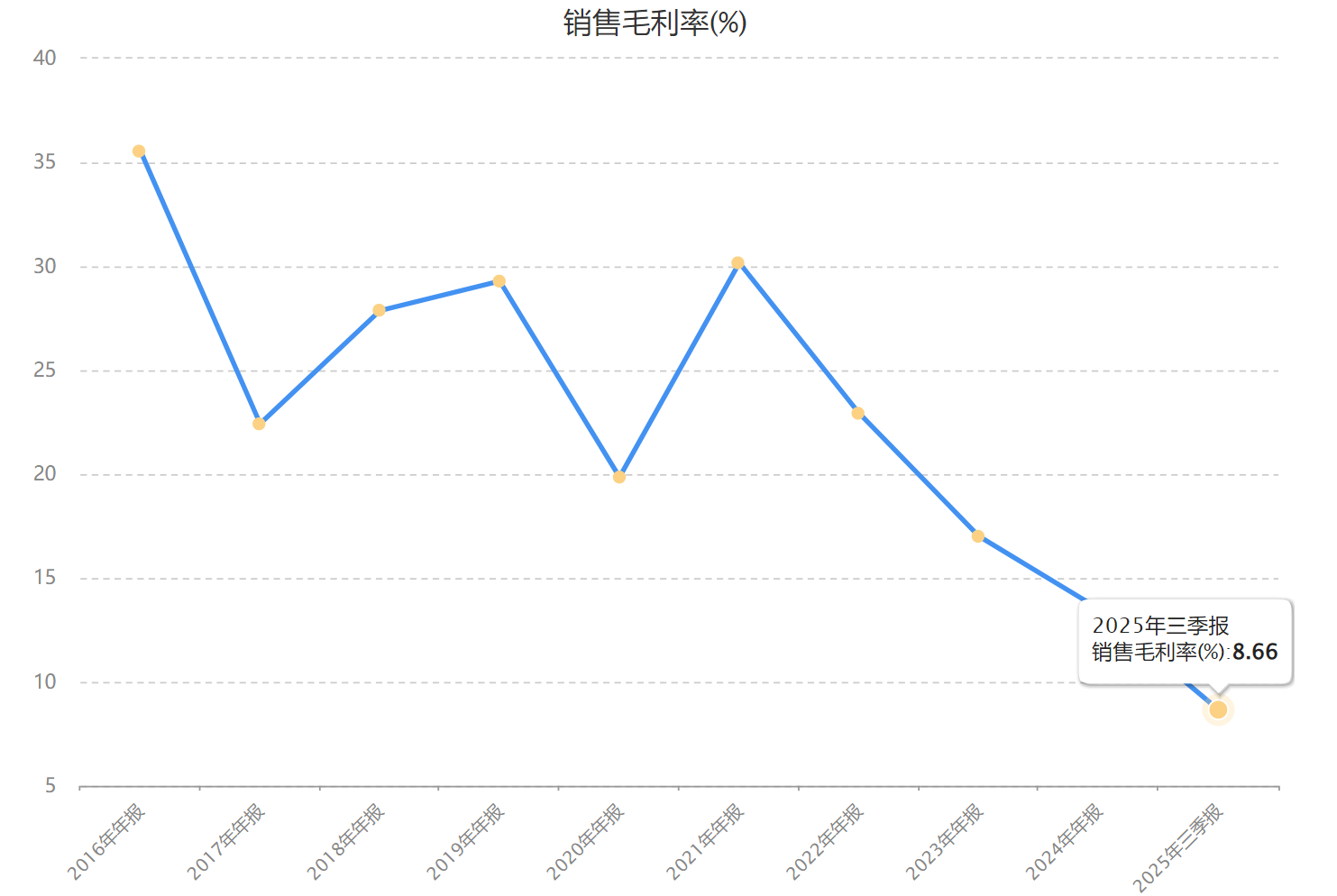 整体毛利率水平随之承压。2025年三季报显示,合康新能销售毛利率8.66%,同比下降38.2%,而可比公司毛利率多保持在30%-40%区间。