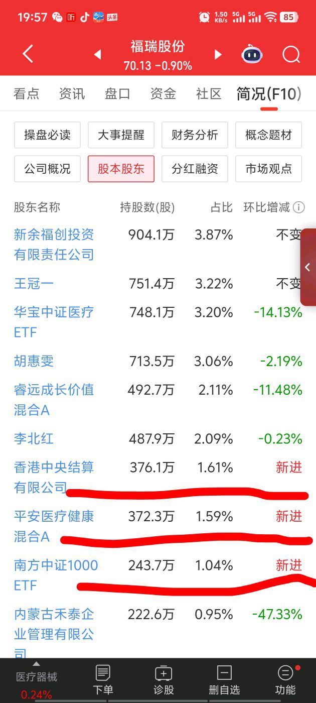 看图说话!十大股东增加3家!基金从30多支增加到73支!
