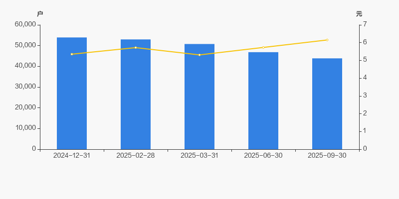 截至2025年9月30日,公司最新流通股本为5.45亿股。户均持有流通股数量由上期的1.16万股上升至1.24万股,户均流通市值7.64万元。