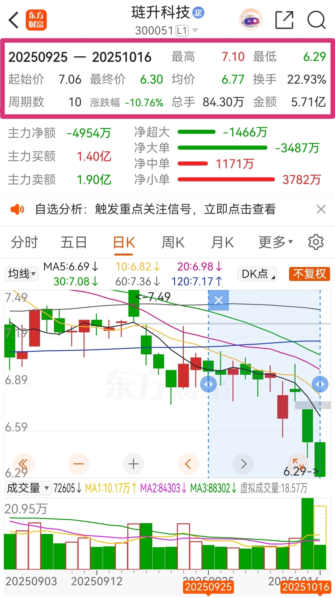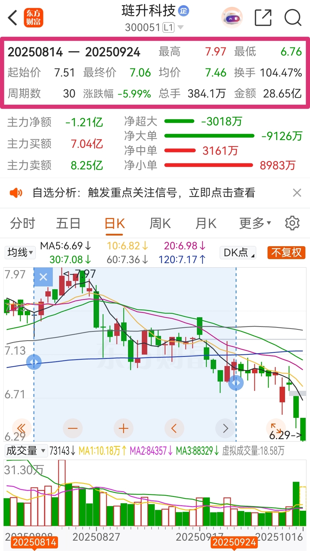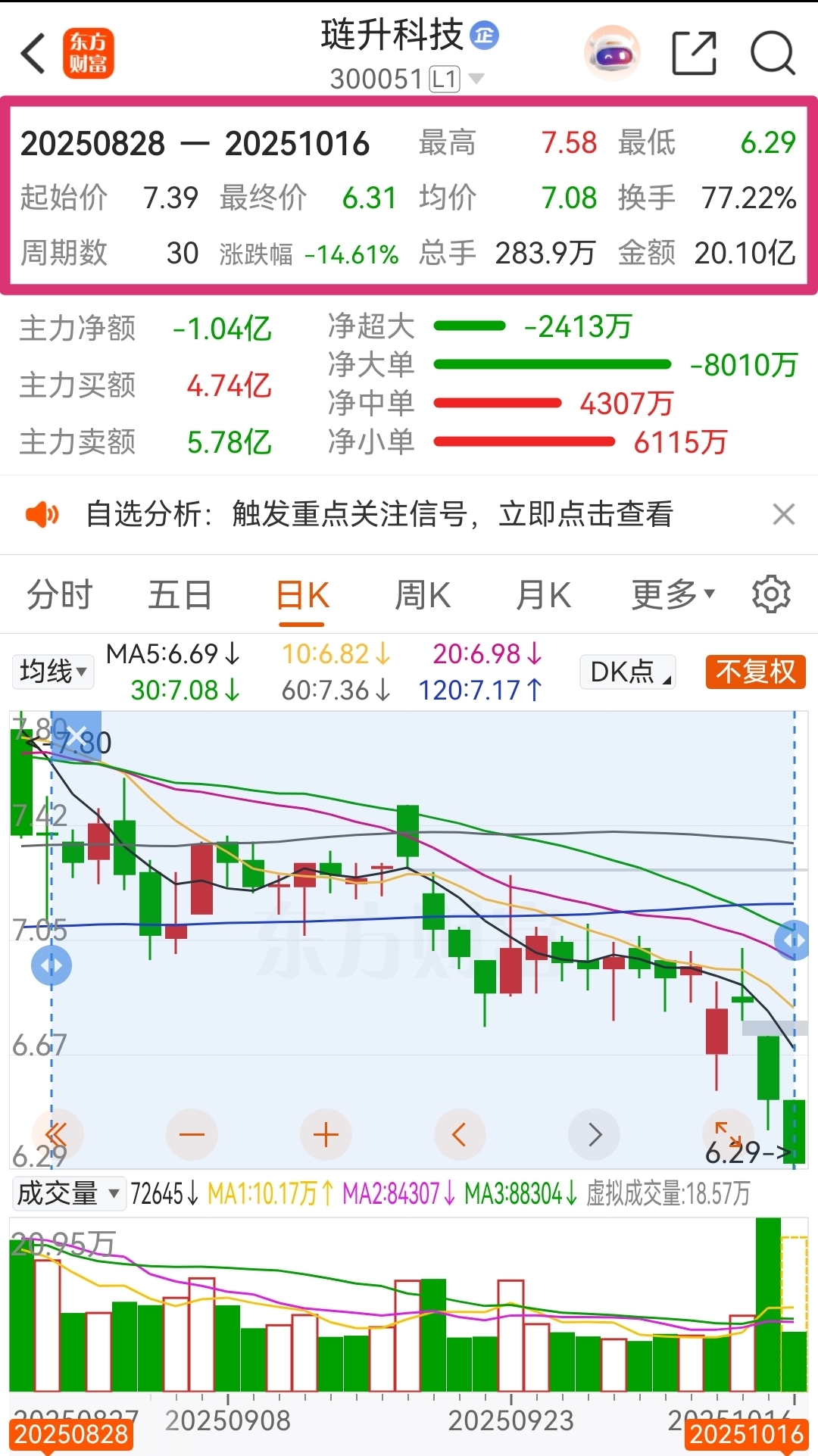 日K线图中线指标BOLL线下轨的价格为6.48元!沪深两市的金典,击穿下轨必击发强力反攻!