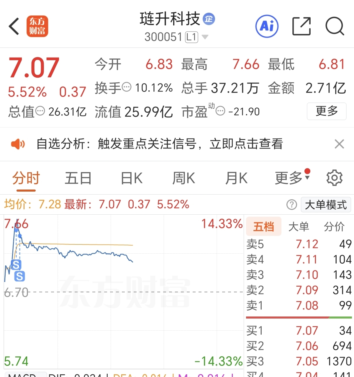 $琏升科技(SZ300051)$ 拉高要跑 放量了 今天进场必吃套