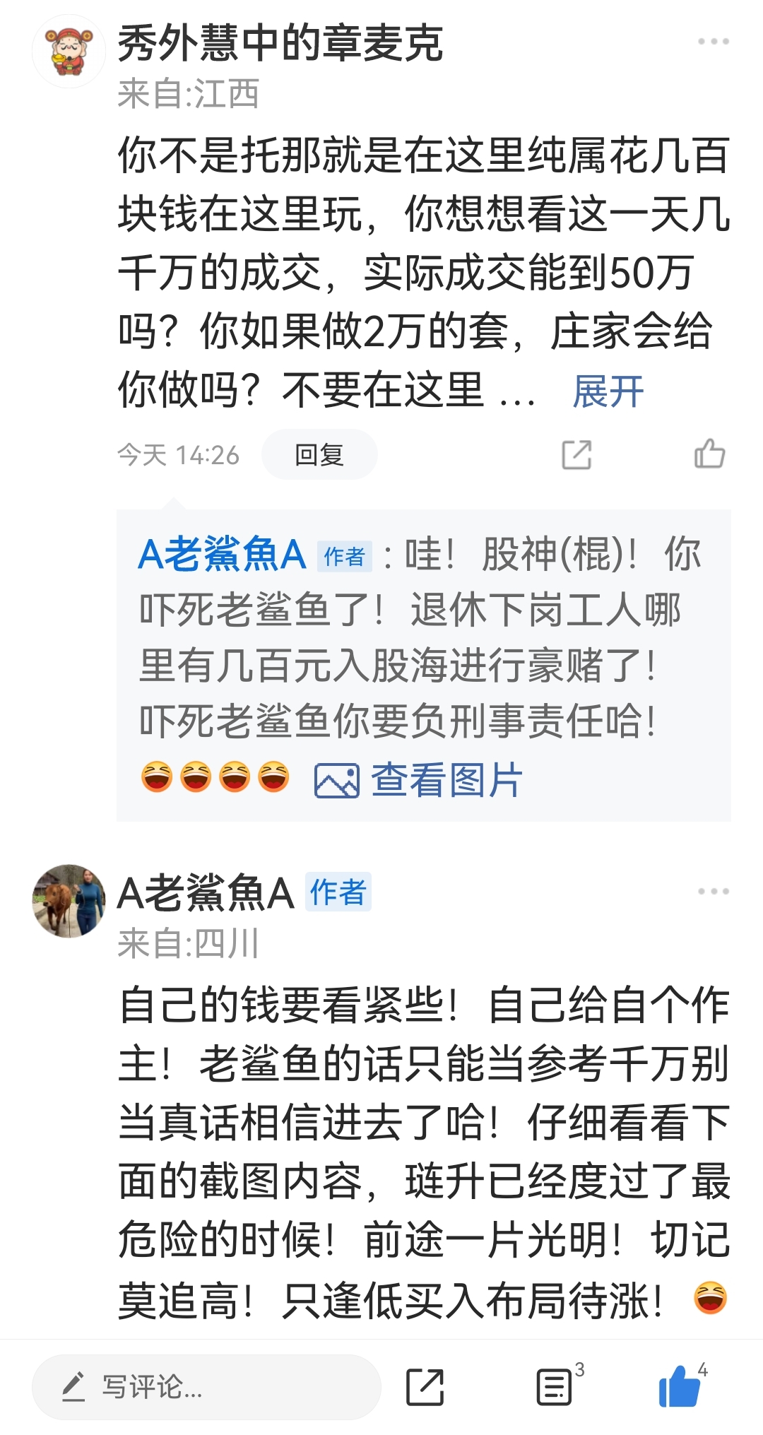 温馨提示: 1.根据《证券法》规定,禁止编造、传播虚假信息或者误导性信息,扰乱证券市场;2.用户在本社区发表的所有资料、言论等仅代表个人观点,与本网站立场无关,不对您构成任何投资建议。用户应基于自己的独立判断,自行决定证券投资并承担相应风险。《东方财富社区管理规定》