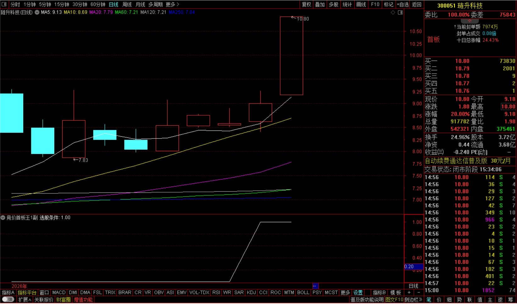 $琏升科技(SZ300051)$ 龙抬头竞价首板王战法