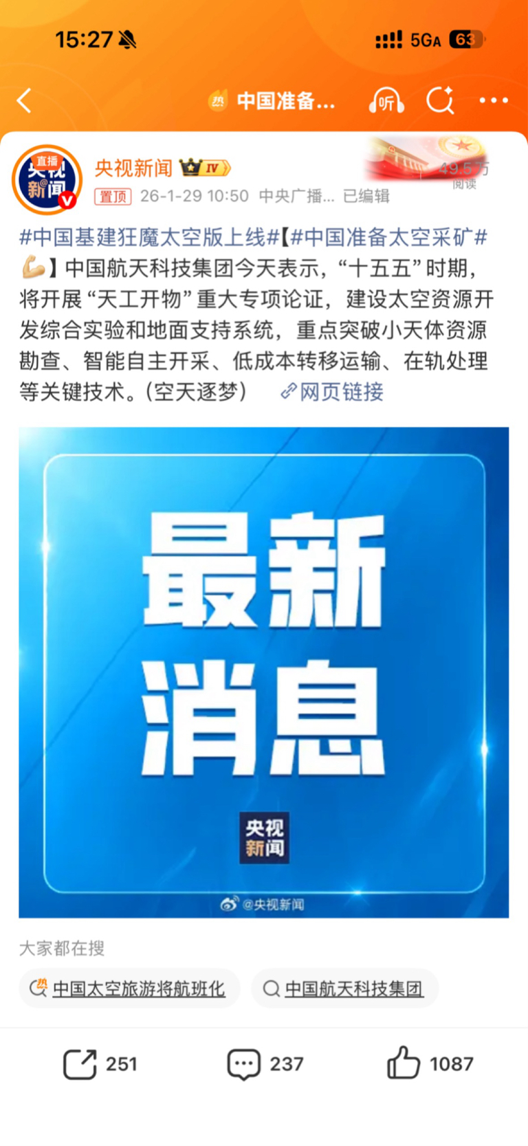 $琏升科技(SZ300051)$ 央视新闻天工开物太空采矿,不用太阳能难道用汽油?再按摩一遍。