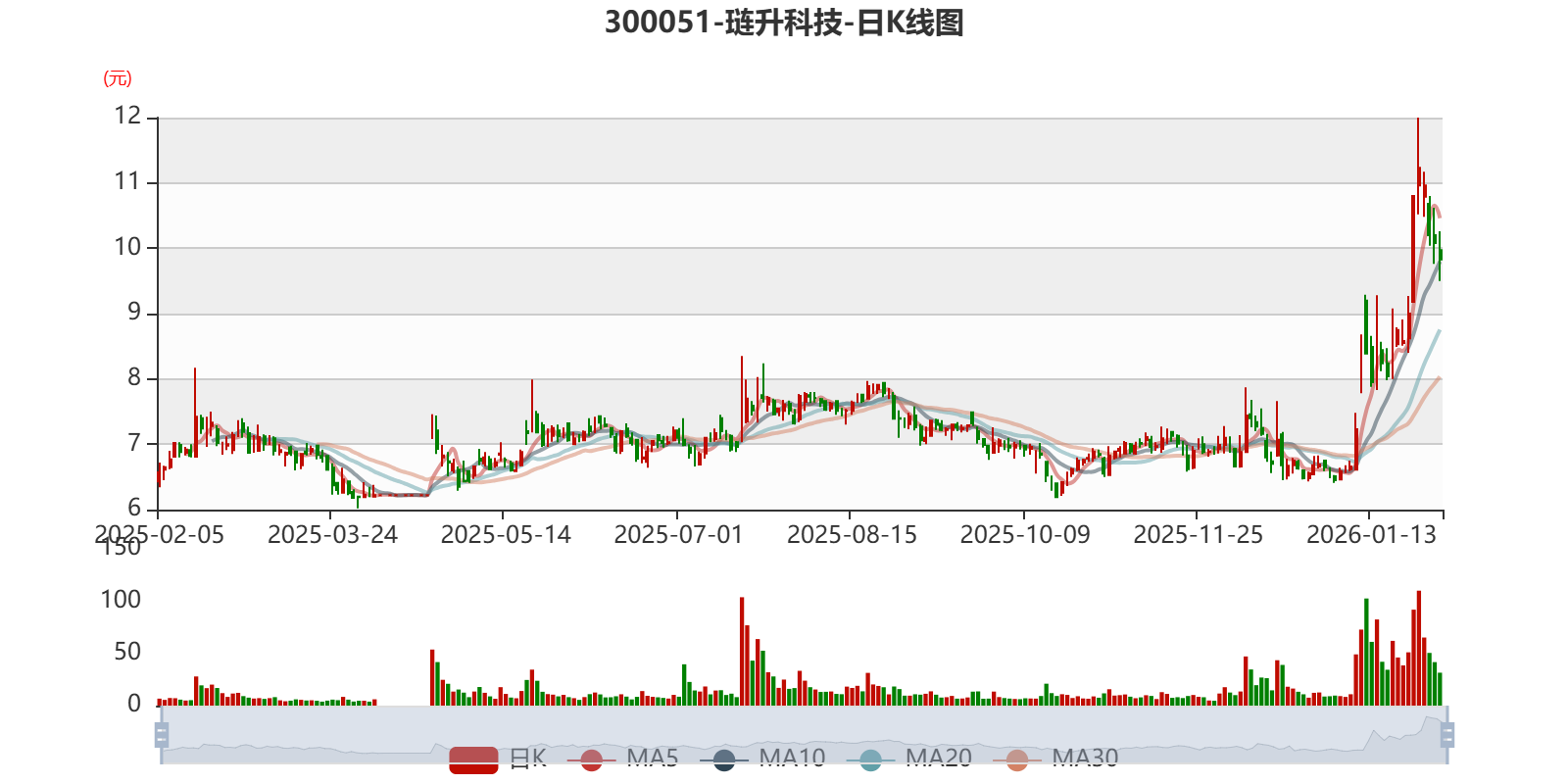 中证智能财讯琏升科技(300051)1月30日晚间披露2025年度业绩预告,预计2025年实现营业收入3.7亿元至4.5亿元;归母净利润亏损1亿元至1.5亿元,上年同期亏损1.1亿元;扣非净利润亏损9700万元至1.47亿元,上年同期亏损1.39亿元。以最新收盘价计算,市净率(LF)约22.41倍,市销率(TTM)约8.92倍。