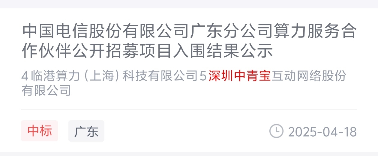 $ST中青宝(SZ300052)$ 中标,5个亿