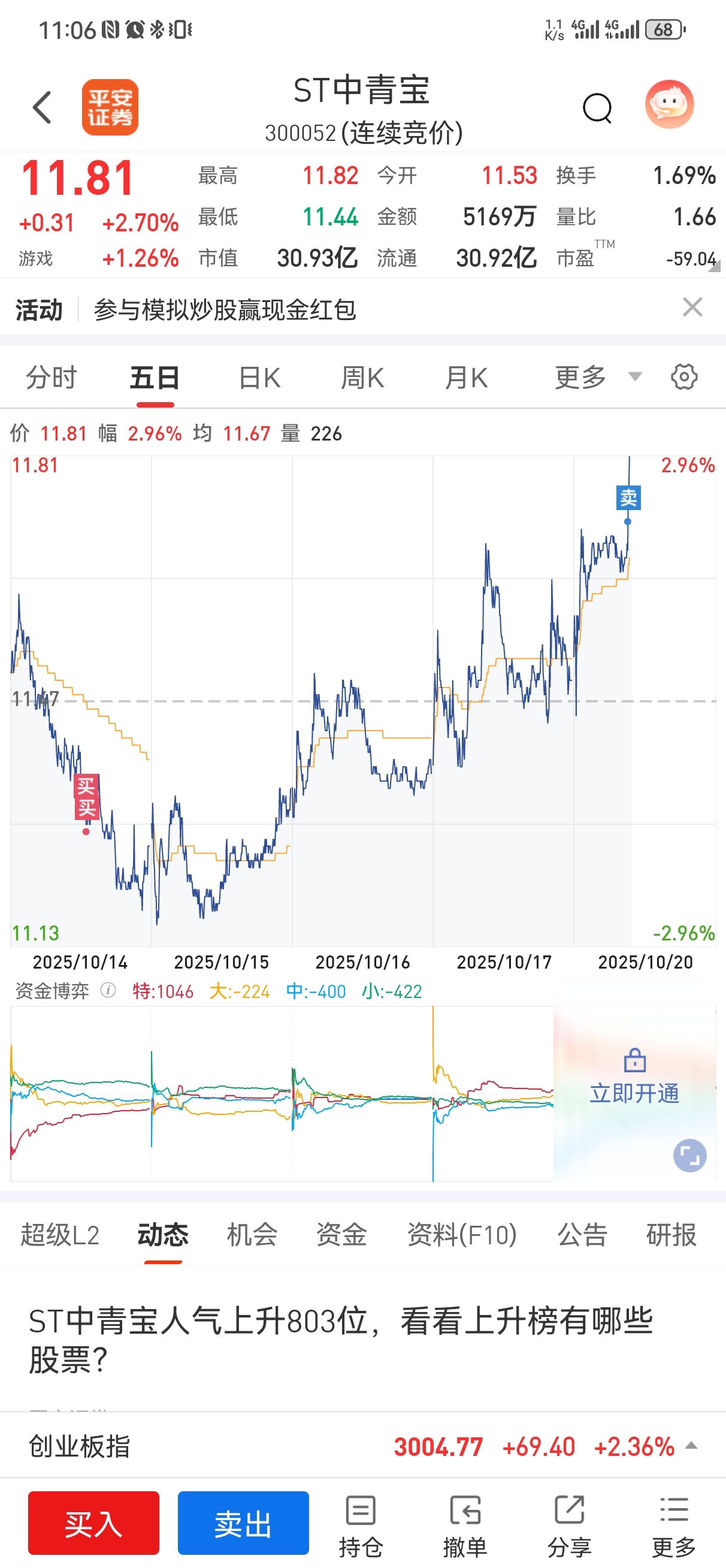 $ST中青宝(SZ300052)$ 每次玩宝宝都挣钱走,谢谢主力了,下来再买