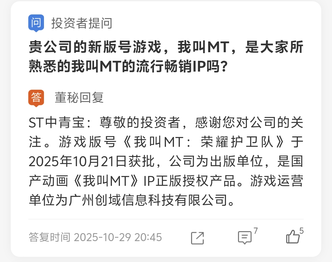 $ST中青宝(SZ300052)$ 希望中青宝把我叫MT做好,经典IP。