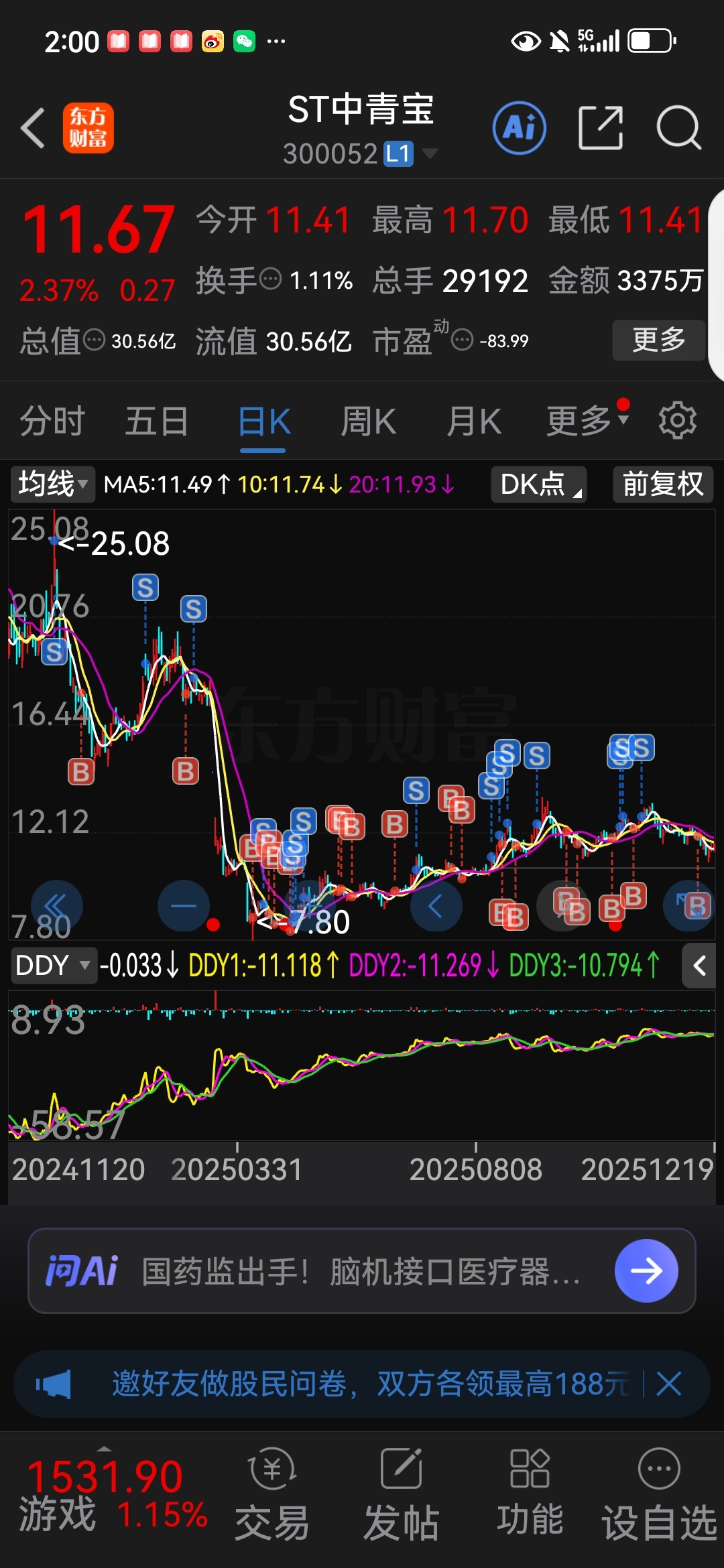 $ST中青宝(SZ300052)$