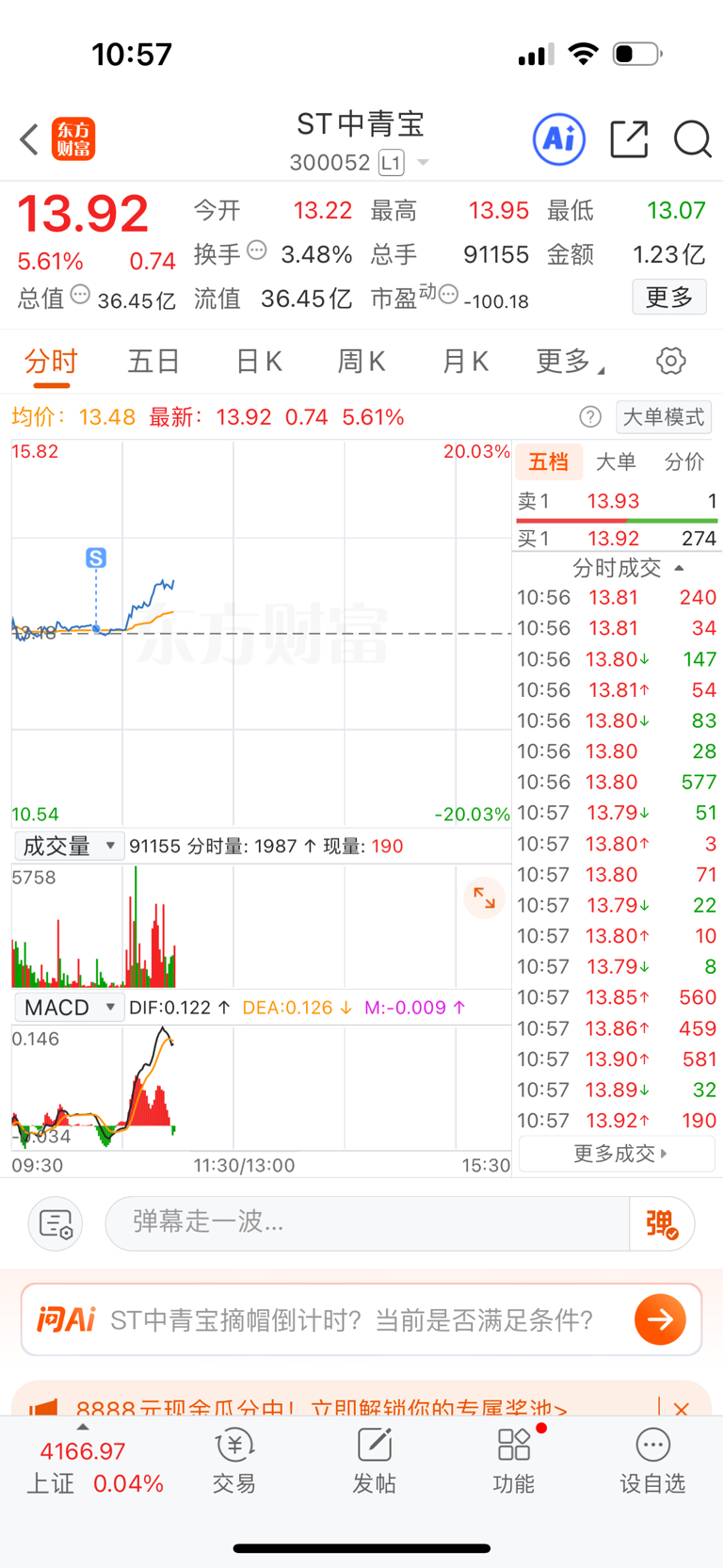 $ST中青宝(SZ300052)$ 我求求你了 别涨了