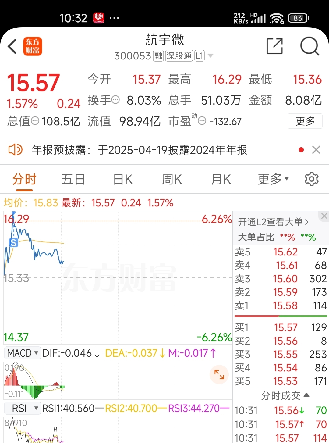 $航宇微(SZ300053)$ 15元加仓,回本16.28减仓