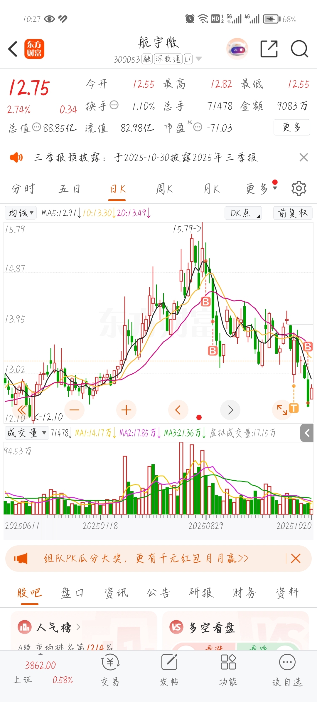 $航宇微(SZ300053)$ 硬补3次!1326的本!给个机会,回本就走!不挣一分!