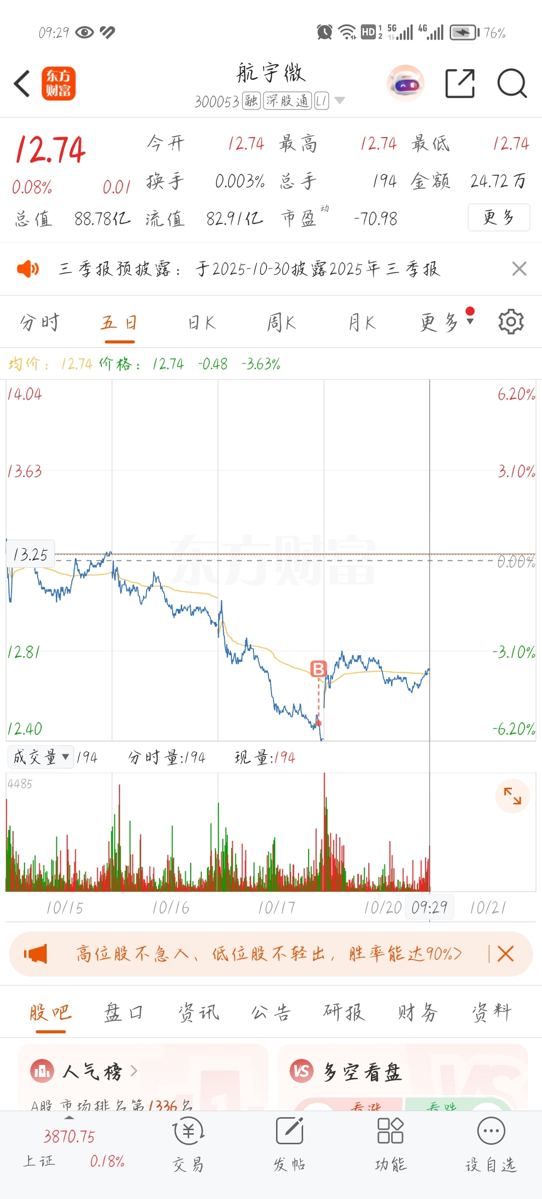 $航宇微(SZ300053)$ 成本1325放我走!回本就撤!