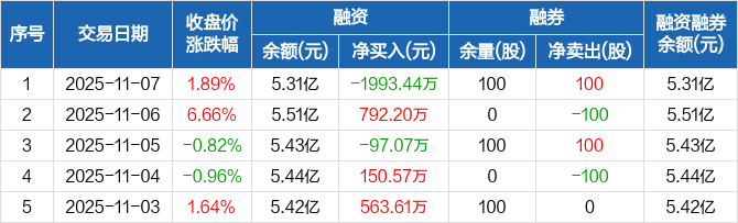 航宇微:融资净偿还1993.44万元,融资余额5.31亿元(11-07)