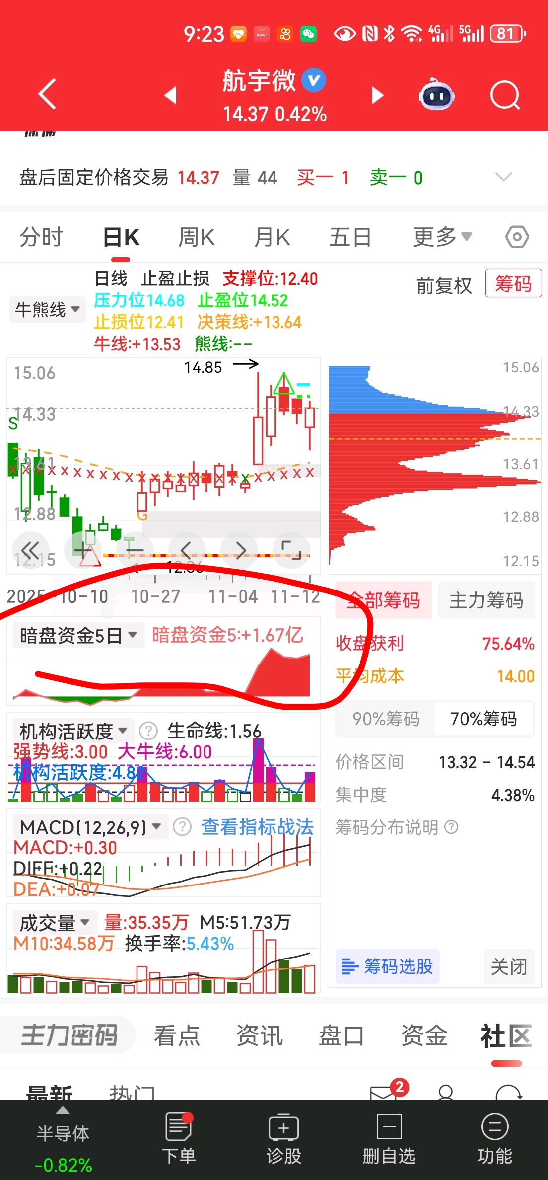 五日资金流入1.67亿,大资金陆陆续续进场,潜伏好,相信自己相信的力量,航宇微将