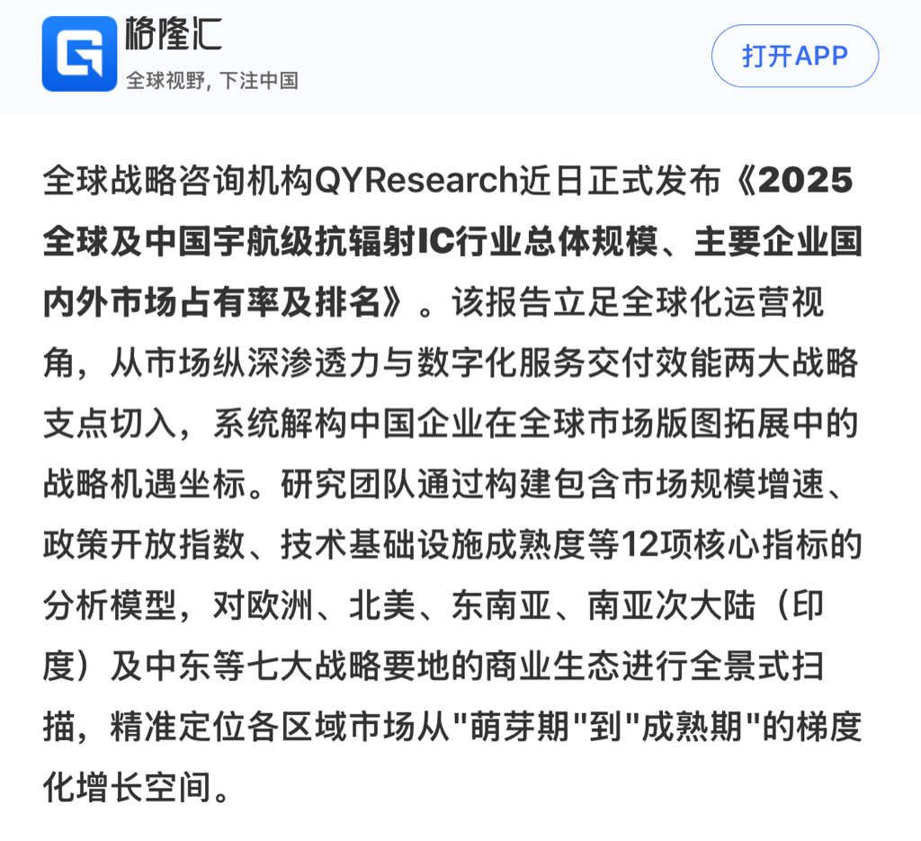 $航宇微(SZ300053)$ 抗辐射Ai芯片,航天智装和航宇微一个等级,但各有各的优势,航宇微比航天智装多了一项太空10800小时的太空抗辐射试验。