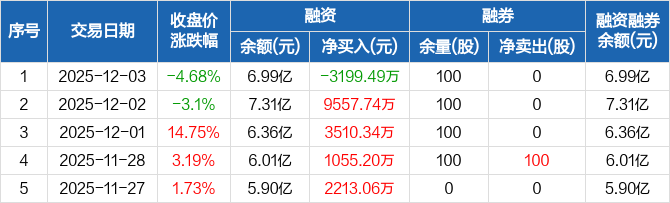 航宇微:融资净偿还3199.49万元,融资余额6.99亿元(12-03)