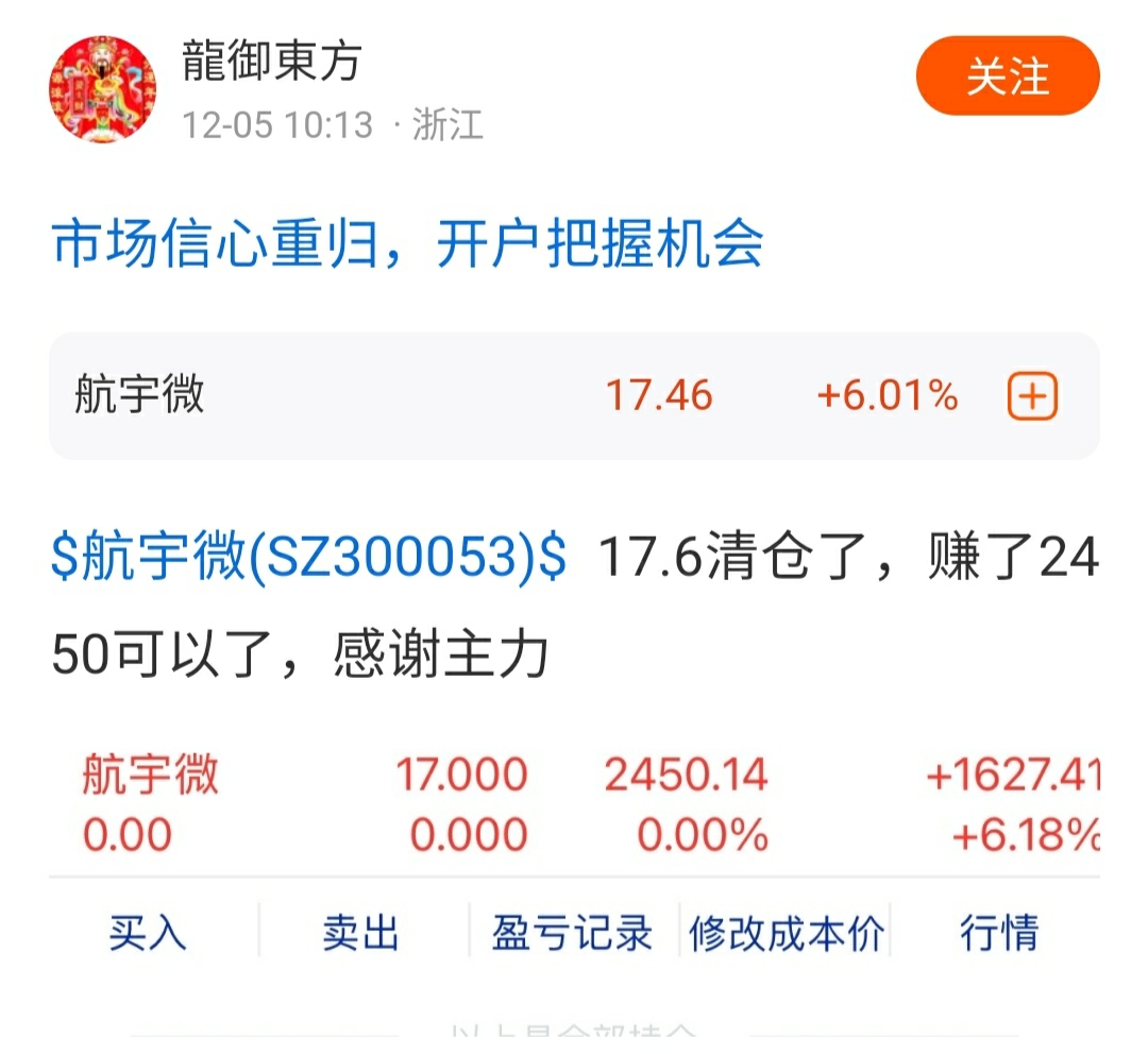 四万市值日夜刷屏唱空上海新阳的两个月浙江全职跳梁小丑@龙御东方真的好牛逼!直接吓