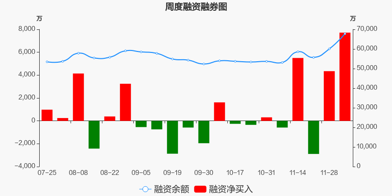 航宇微本周(2025/12/01-2025/12/05)累计涨幅达14.94%,截至12月5日最新股价报收17.46元。从增量上来看,12月1日至12月4日融资买入交易规模9.49亿元,融资偿还规模8.72亿元,期内融资净买入7717.16万元。从存量上来看,截止12月7日,航宇微融资融券余额6.78亿元,其中融资余额规模6.78亿元,融券余额规模1647元。
