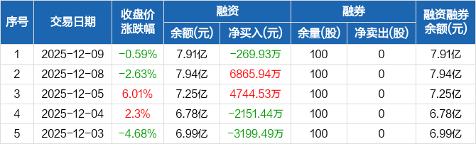 航宇微:融资净偿还269.93万元,融资余额7.91亿元(12-09)