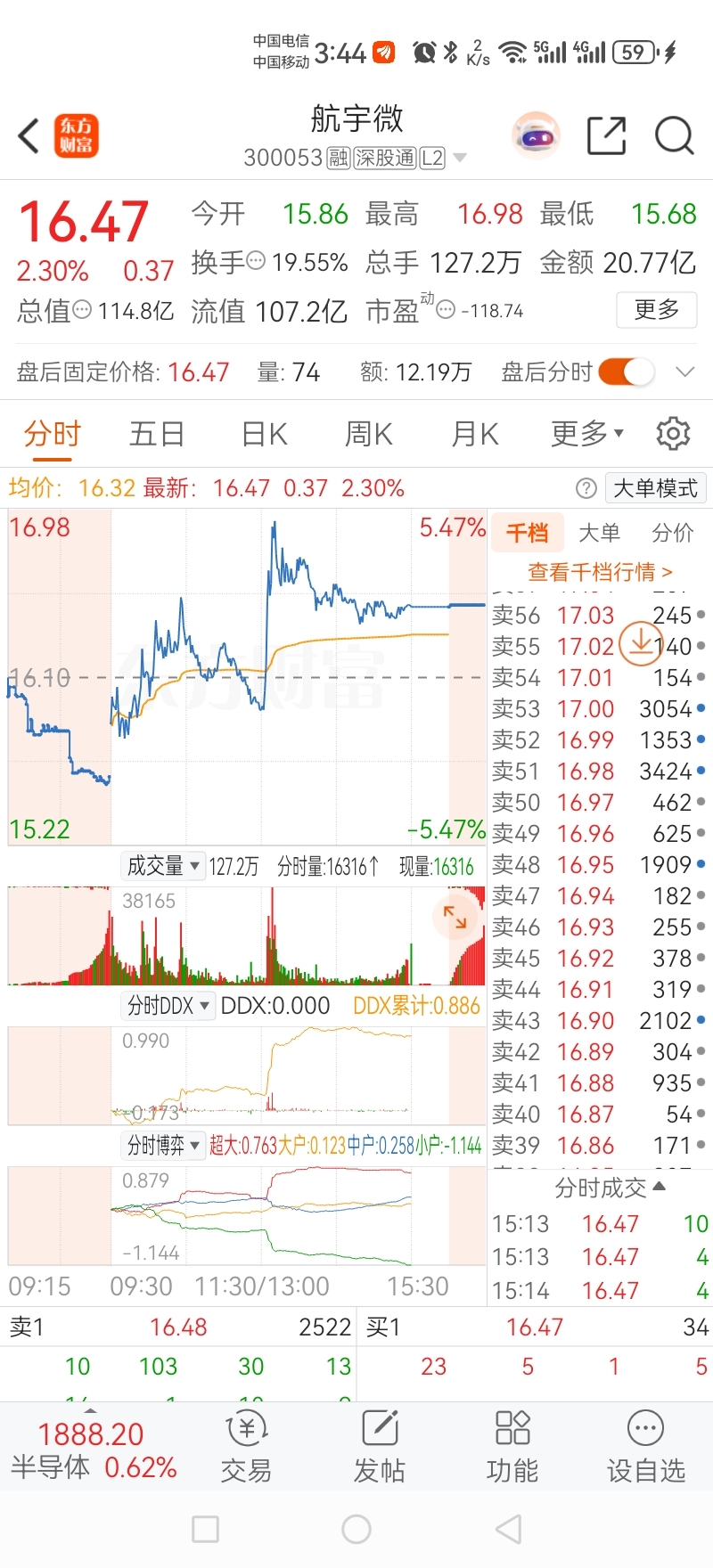 $航宇微(SZ300053)$ 这是我保留的前期筹码被一天天干掉前的截图