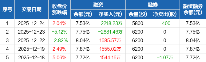 航宇微:融资净偿还2218.23万元,融资余额7.53亿元(12-24)