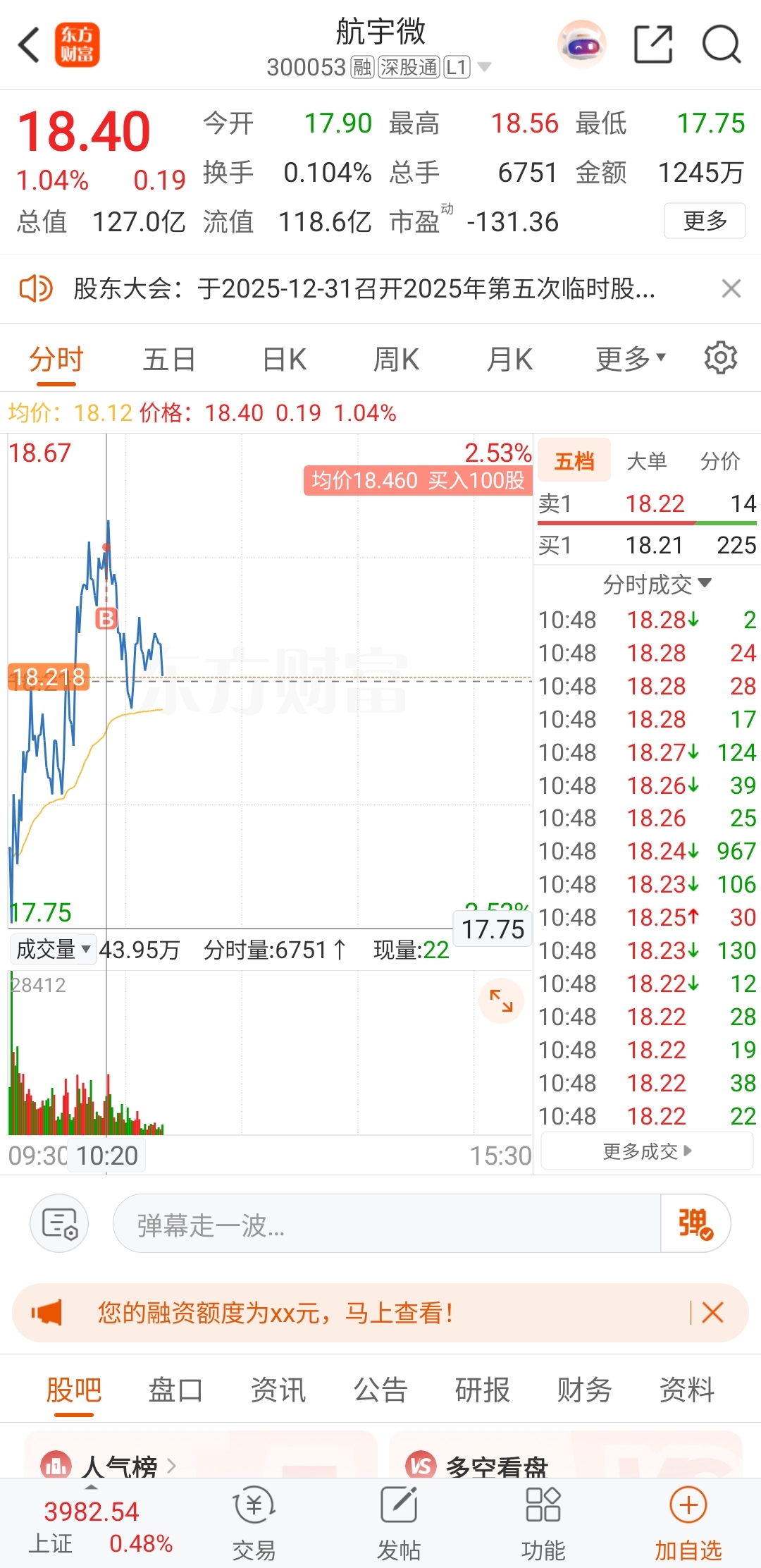 $航宇微(SZ300053)$ 买了100股给买蹦了