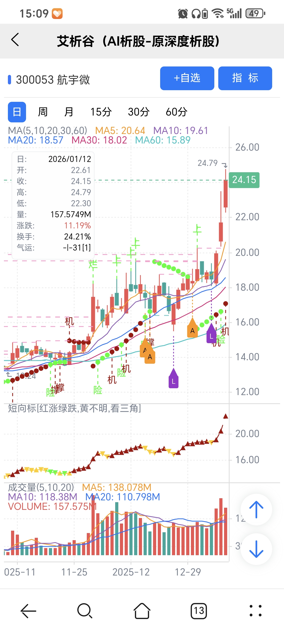 AI模型选股,量化指标识别关键点,简单技术分析确定买卖点,结合量化和人工综合运用,才能有优势。 航宇微