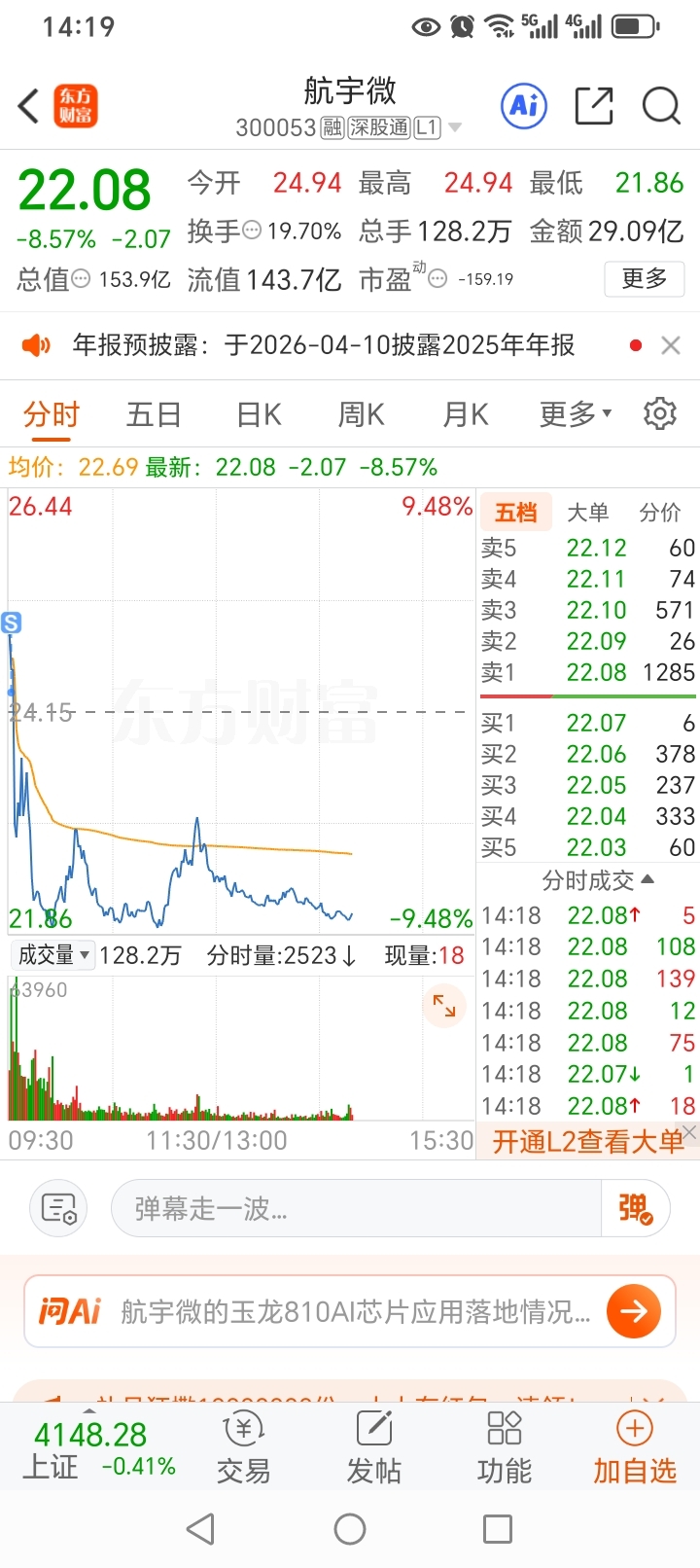 $航宇微(SZ300053)$ 早上红盘卖的。但躲过初一没躲过十五,在航发里面吃了个跌停