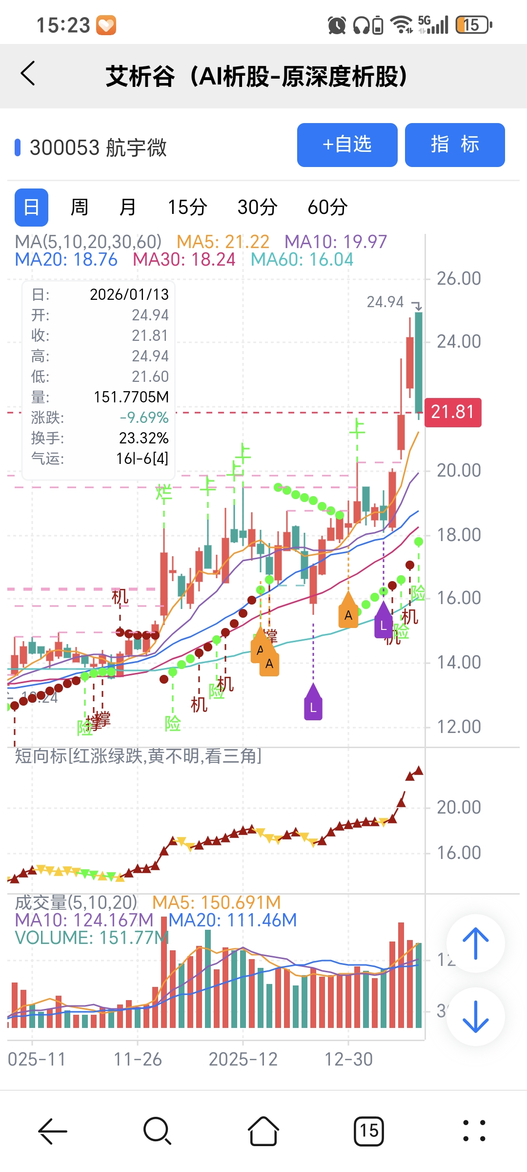 AI模型选股,量化指标识别关键点,简单技术分析确定买卖点,结合量化和人工综合运用,才能有优势。航宇微