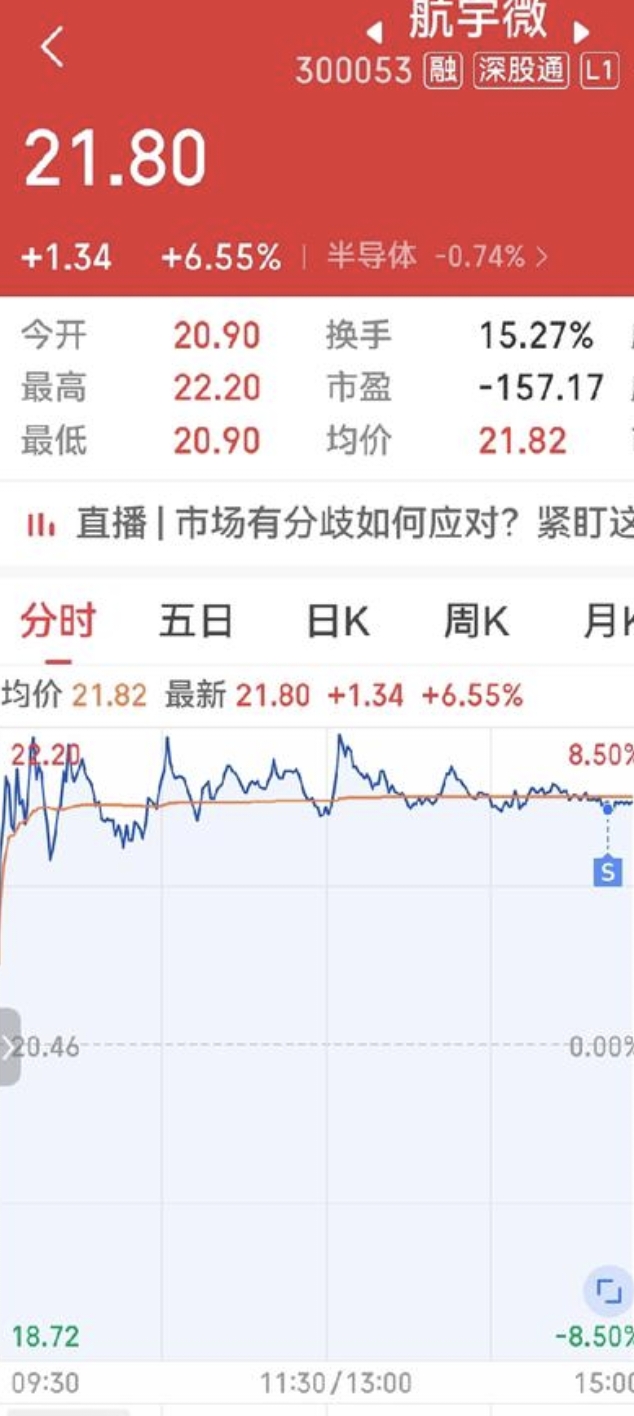 $航宇微(SZ300053)$ 又破均线了明天绝对低开了,明天看情况再进不进