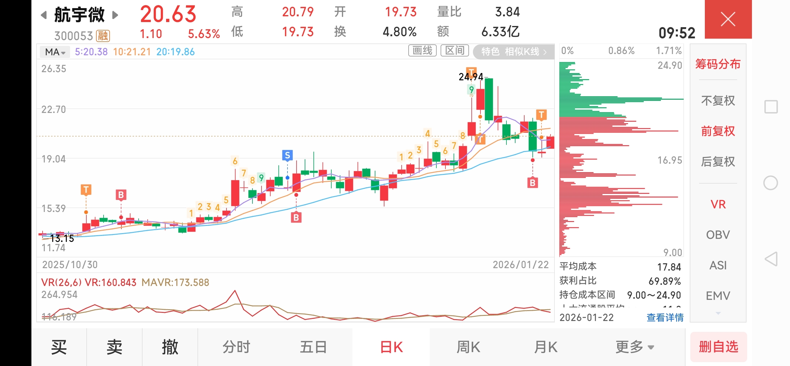 $航宇微(SZ300053)$ 这股我做了快四个月,现在成本12.48.盈利超过65%截止现在,我个人觉得这只股还是可以的,我没有人家那种买到翻倍股的能力,我也不贪心,小赢安心,期待后边更好的表现。做自己熟悉的,不羡慕别人。
