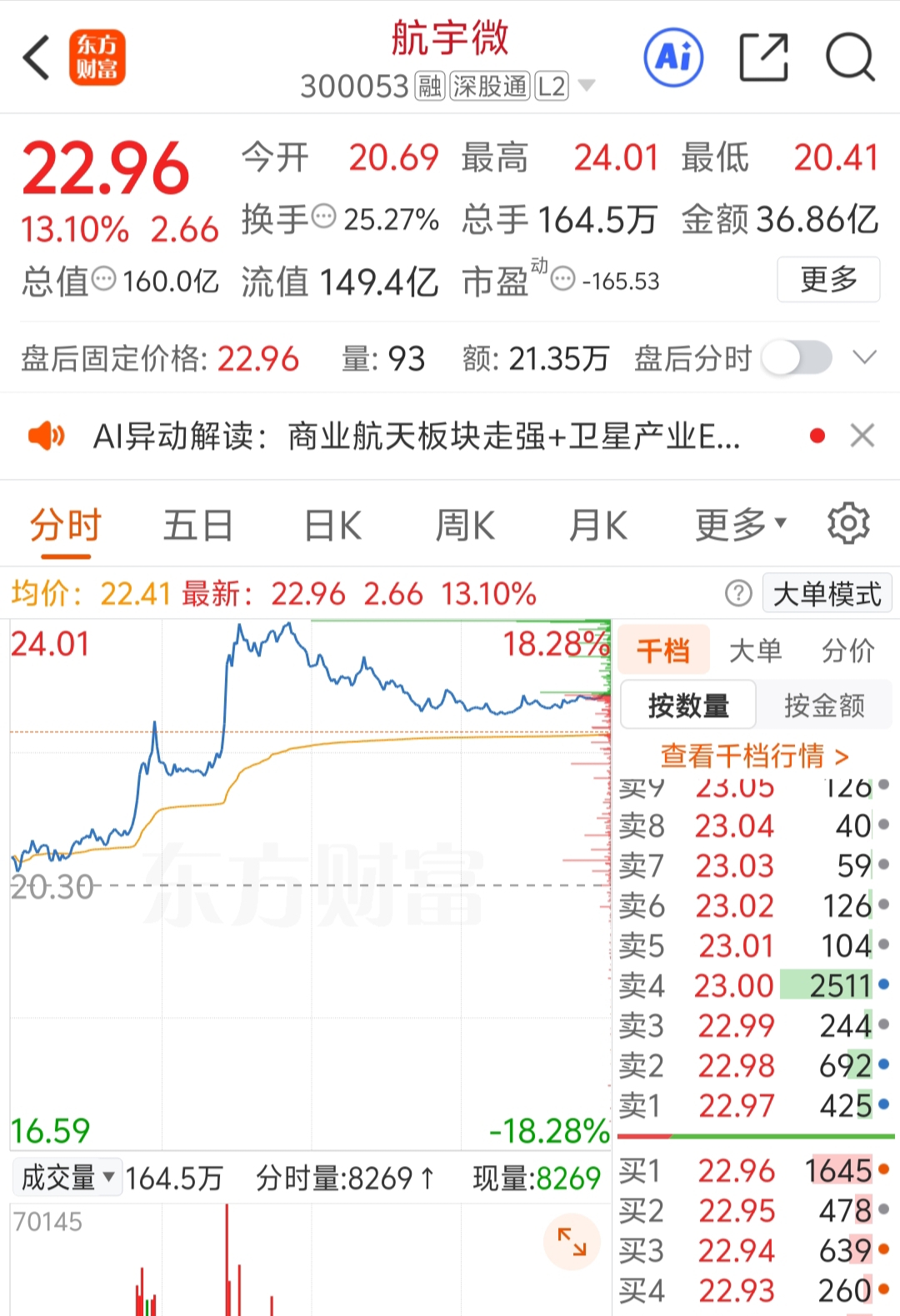 $航宇微(SZ300053)$ 今天航天/卫星很牛,航宇微18个点掉下来5个点,下周补上吗?