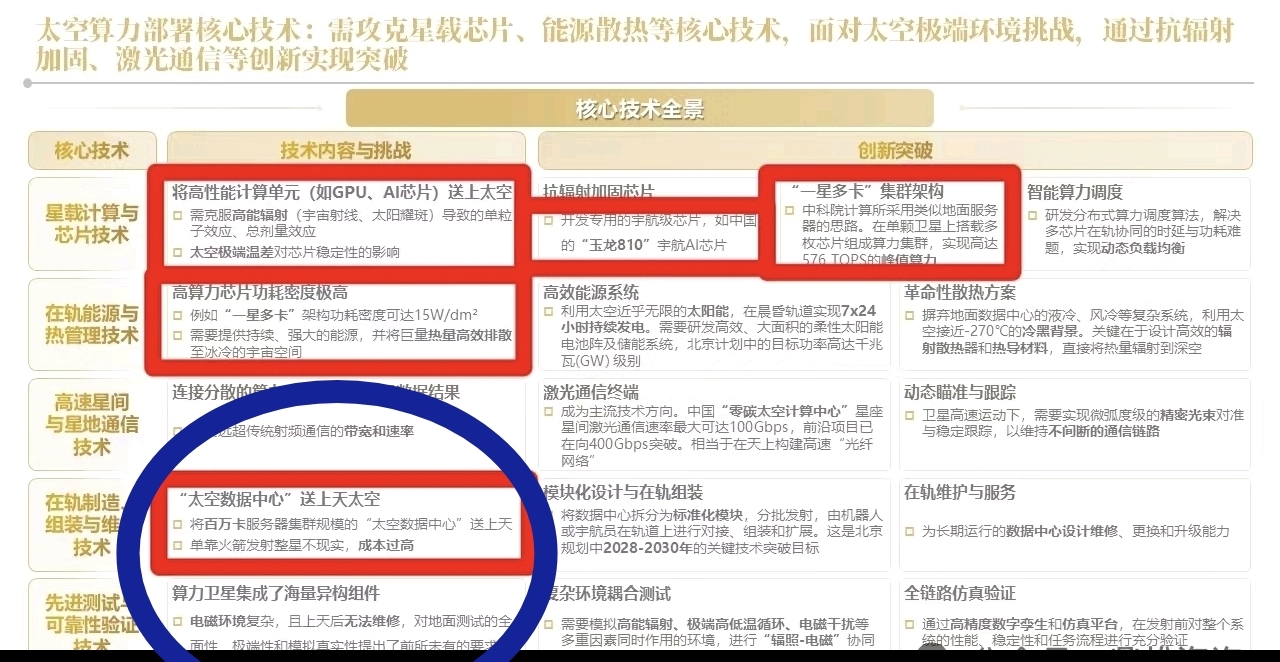 $航宇微(SZ300053)$的玉龙810AI芯片就是太空算力芯片,能实现星上算力自动智能计算。玉龙AI芯片(太空算力引擎):玉龙810A算力12TOP功耗<6W(能效比2TOPS/W),“一星多卡”集群可至576TOPS(需要串联48颗,一颗算力12TOPS),星上处理将传输成本降85%,单景船舶检测仅7秒,高温低温抗辐射极端环境下经天舟六号万次在轨验证。妥妥的太空英伟达,唯一星上算力芯片,无竞争者,国内独一份$航天电子(SH600879)$$乾照光电(SZ300102)$