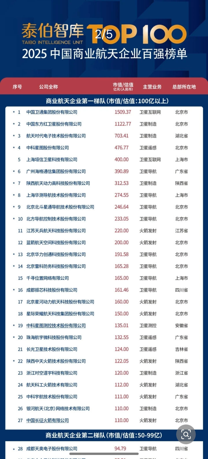 $航宇微(SZ300053)$ 中国商业航天百强榜出炉:北京商业航天产业高质量发展大会暨2026北京国际航天展览会于1月23日至25日在北京亦庄北人亦创国际会展中心盛大举行。大会以“汇聚全球资源共促商业航天为主题,搭建了全球商业航天领域的高端对话与产业协作平台,集中展示了卫星研制、发射服务、测控运营、数据应用等全产业链的最新成果。
