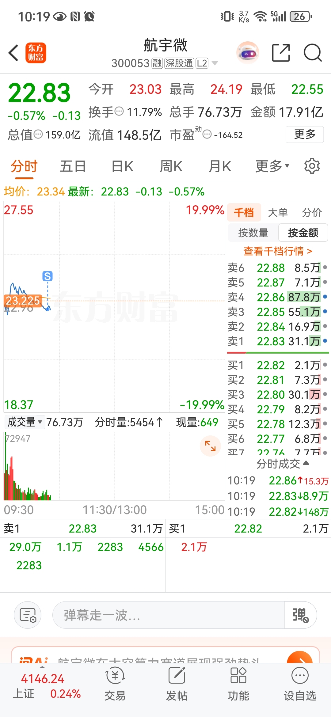 $航宇微(SZ300053)$ 出了你就拉?