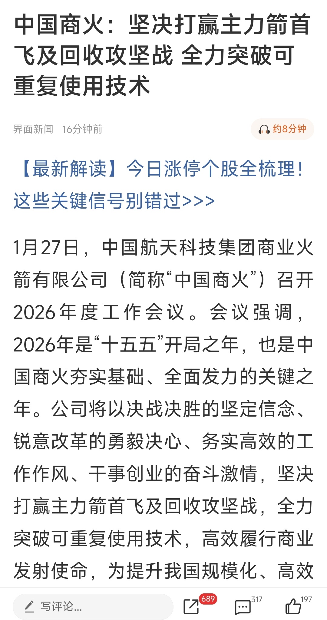 村里打击蹭概念,鼓励有实际业务的商业航天。