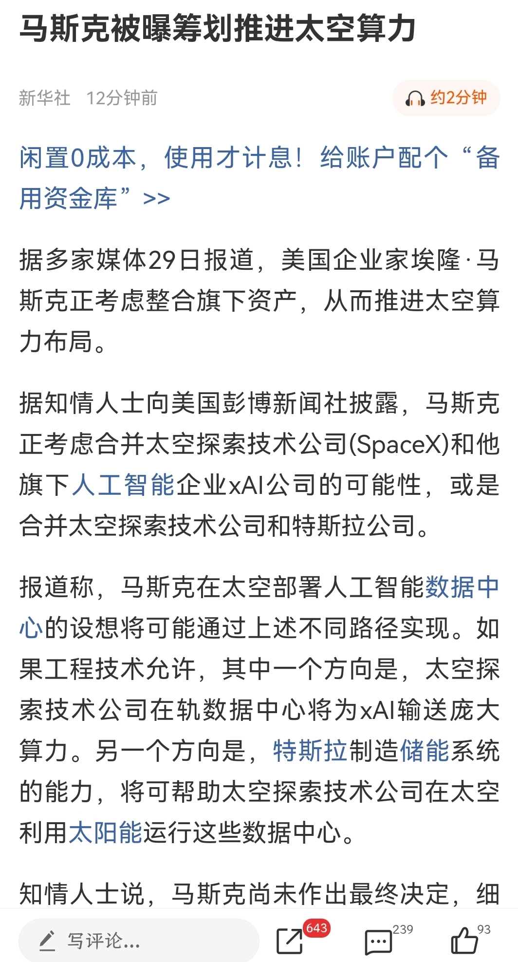 马斯克被爆筹划推进太空算力!航天AI芯片搞起来,太空英伟达搞起来!!!今日抄底,