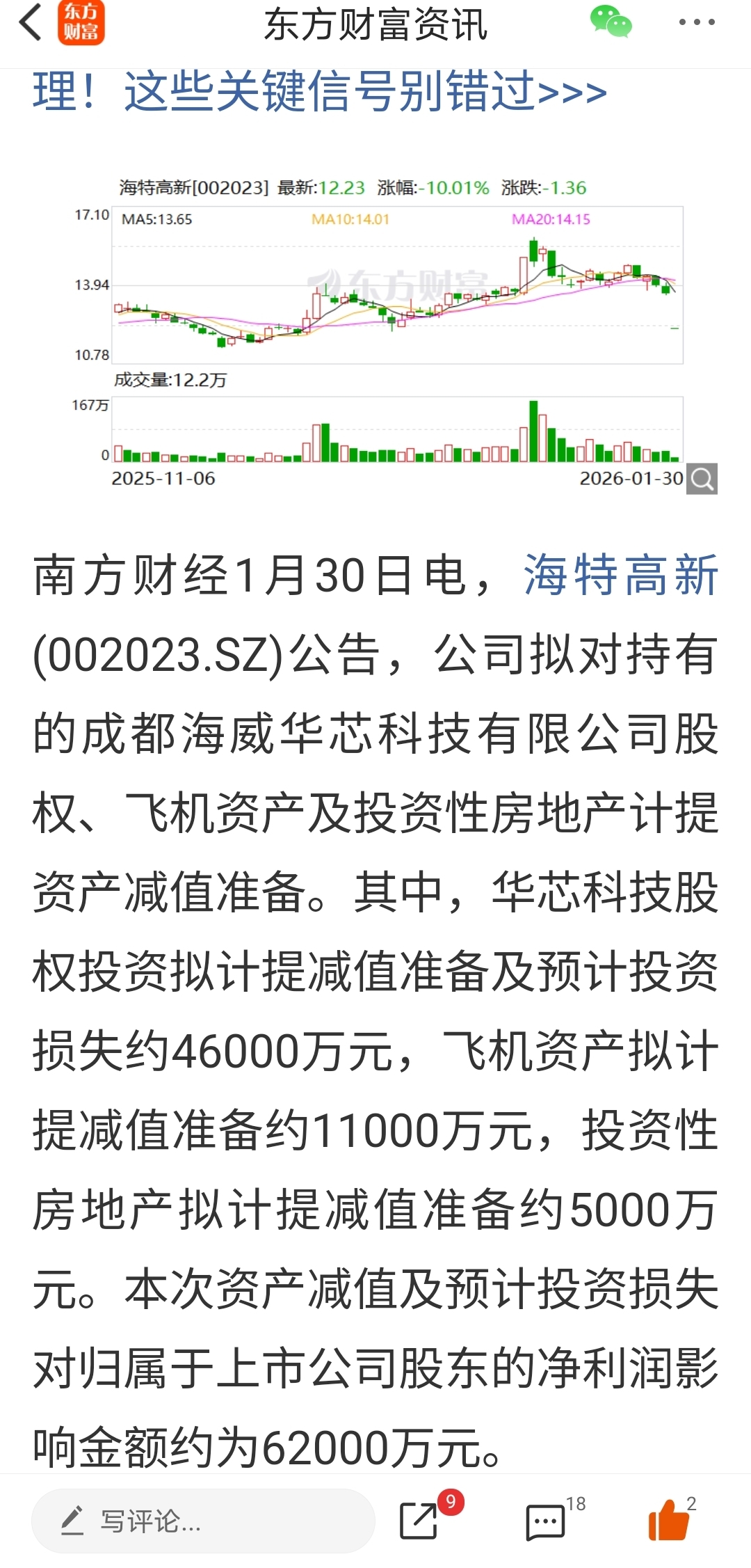 参考海特高新亏损严重计提走势如下