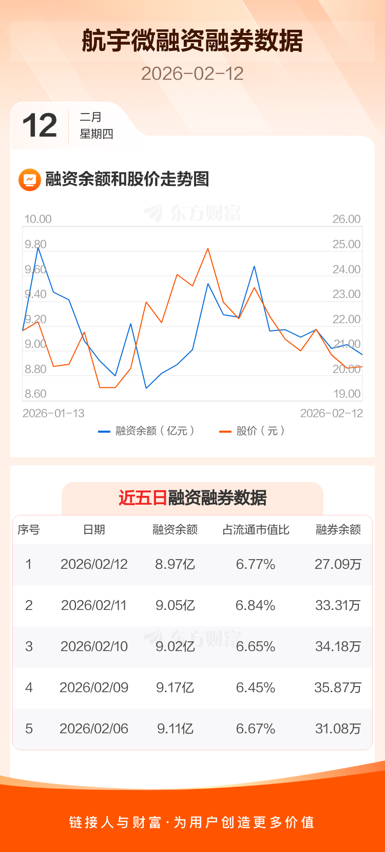 交易所最新数据显示,航宇微于2026年2月12日获融资买入5972.53万元,融资偿还6758.03万元,当日融资净偿还785.5万元。目前,该股融资余额8.97亿,占流通市值比例为6.77%。