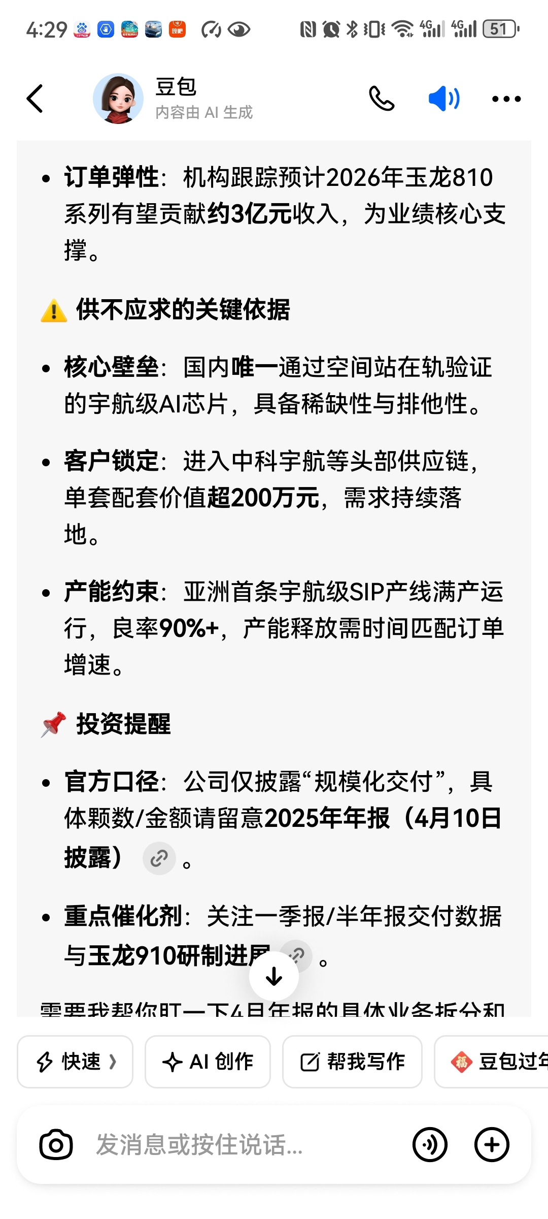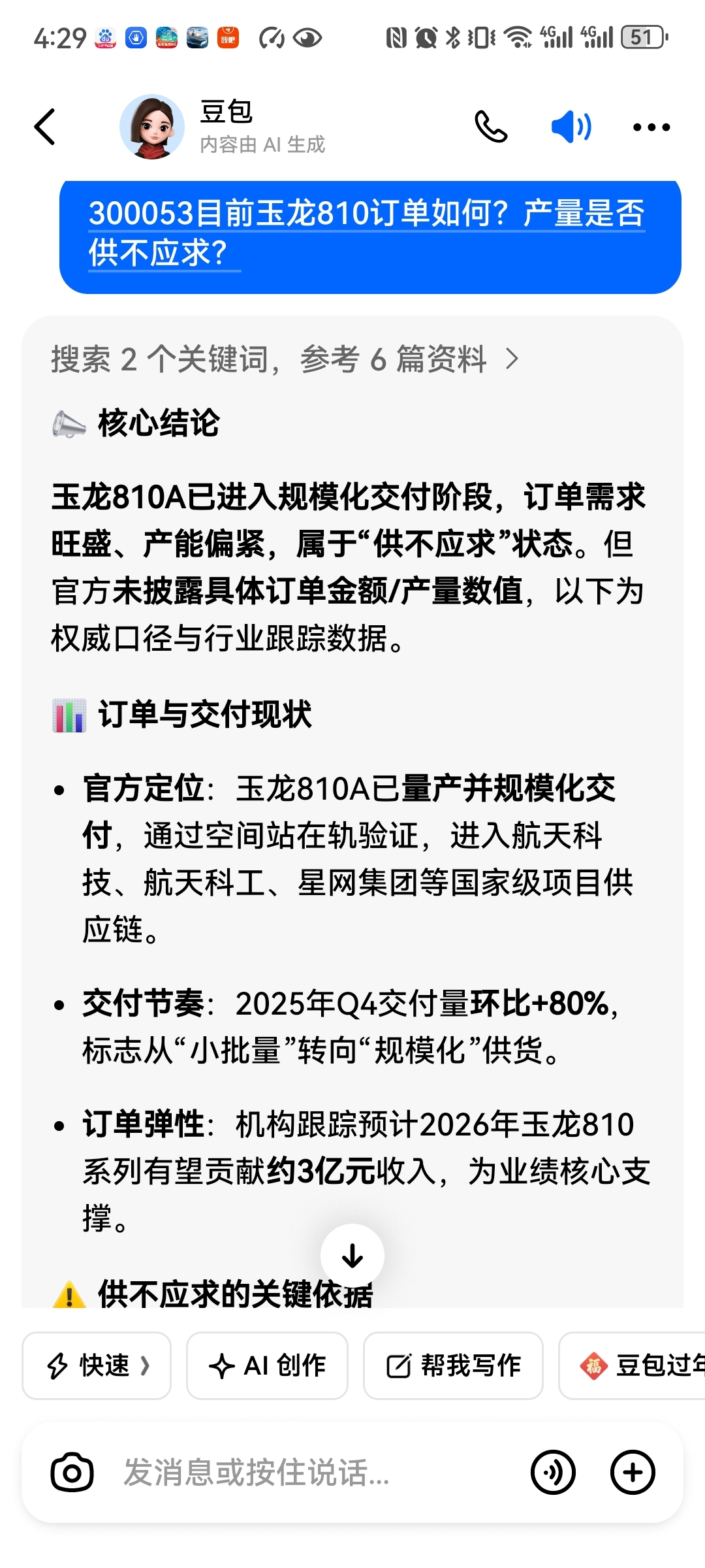 $航宇微(SZ300053)$ 玉龙810芯片供不应求,去年4季度增产80%