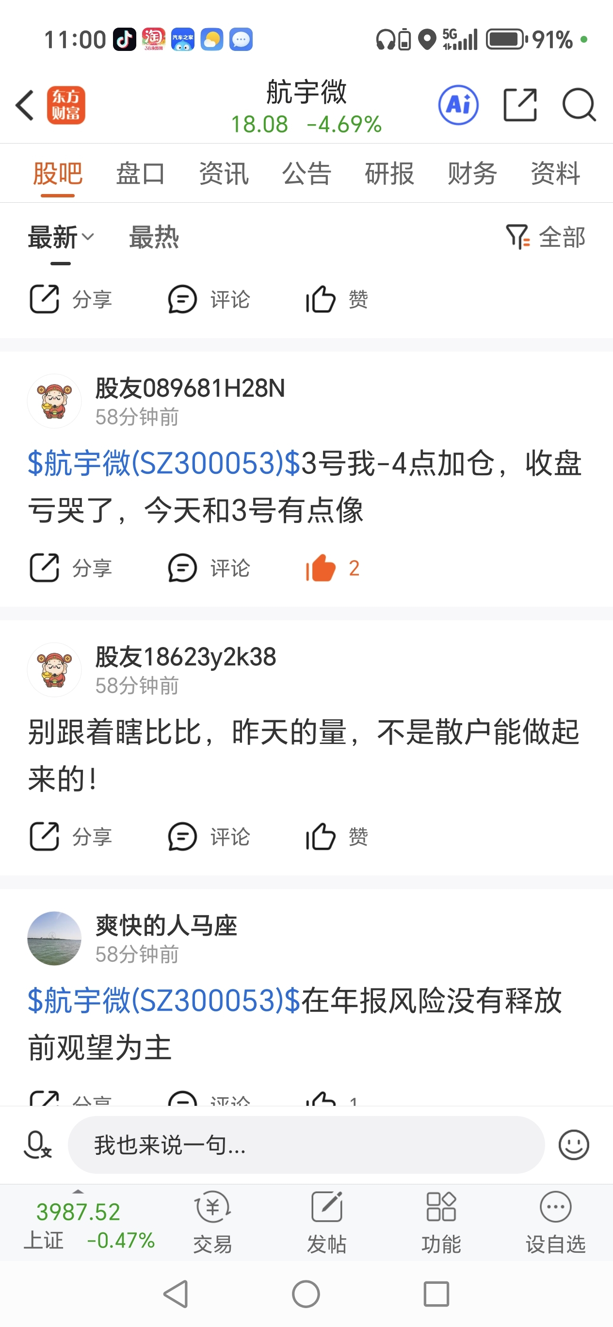 温馨提示: 1.根据《证券法》规定,禁止编造、传播虚假信息或者误导性信息,扰乱证券市场;2.用户在本社区发表的所有资料、言论等仅代表个人观点,与本网站立场无关,不对您构成任何投资建议。用户应基于自己的独立判断,自行决定证券投资并承担相应风险。《东方财富社区管理规定》