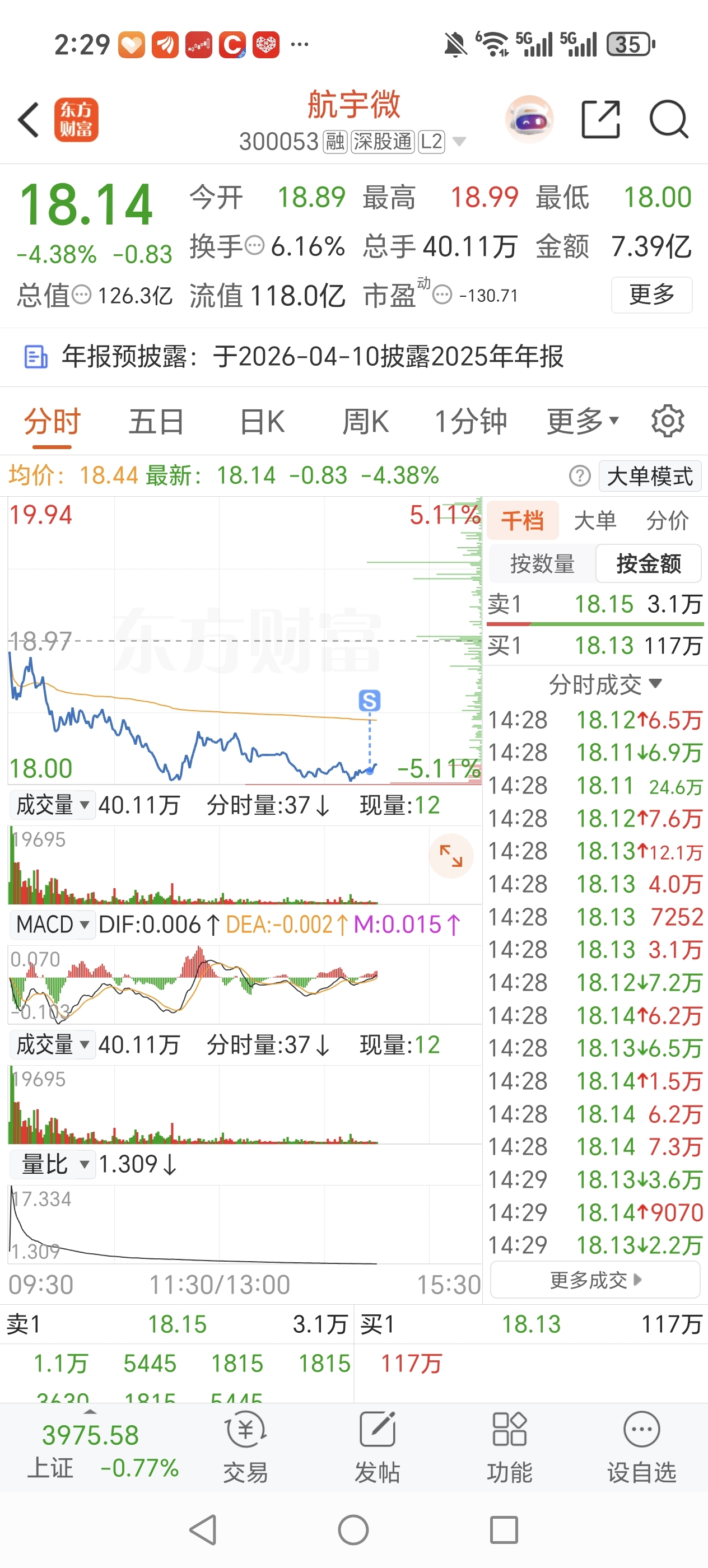$航宇微(SZ300053)$ 清仓多日,昨日买了这个狗,服