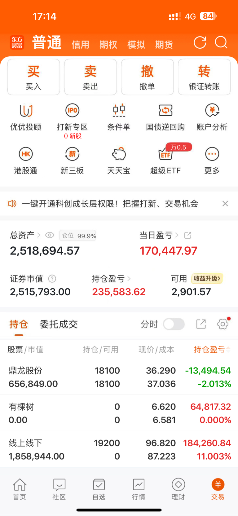 $鼎龙股份(SZ300054)$ $线上线下(SZ300959)$ $有棵树(SZ300209)$ 财财猫实盘记录分享第 35 天 (9月30日 周二)