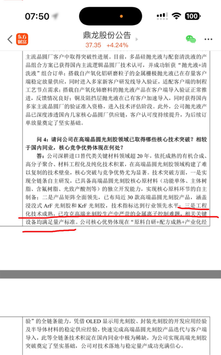 $鼎龙股份(SZ300054)$ 金属离子含量是衡量光刻胶等级的核心指标,直接决定芯片良率。将其稳定控制在十亿分之一(ppb)级别,是国产高端光刻胶实现稳定量产必须翻越的最后一座技术高山。此举不仅是一个实验室成果,更关键的是 “关键设备已满足量产标准” 。这标志着该技术已完成了工程化验证,为其潜江二期300吨高端光刻胶产线从“试运行”顺利过渡到“全面量产”,扫清了最核心的技术障碍。