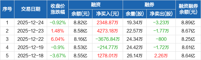 鼎龙股份:融资净买入2348.87万元,融资余额8.82亿元(12-24)