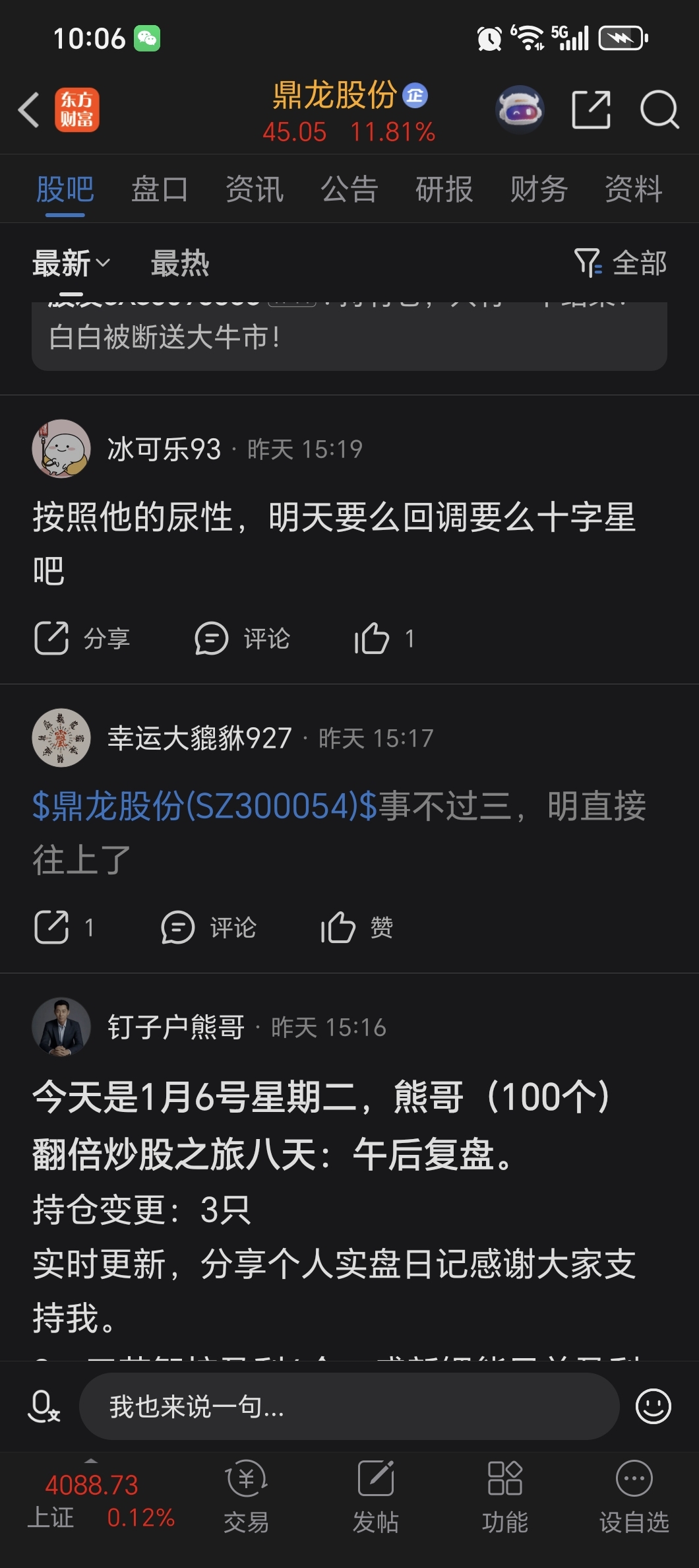 温馨提示: 1.根据《证券法》规定,禁止编造、传播虚假信息或者误导性信息,扰乱证券市场;2.用户在本社区发表的所有资料、言论等仅代表个人观点,与本网站立场无关,不对您构成任何投资建议。用户应基于自己的独立判断,自行决定证券投资并承担相应风险。《东方财富社区管理规定》